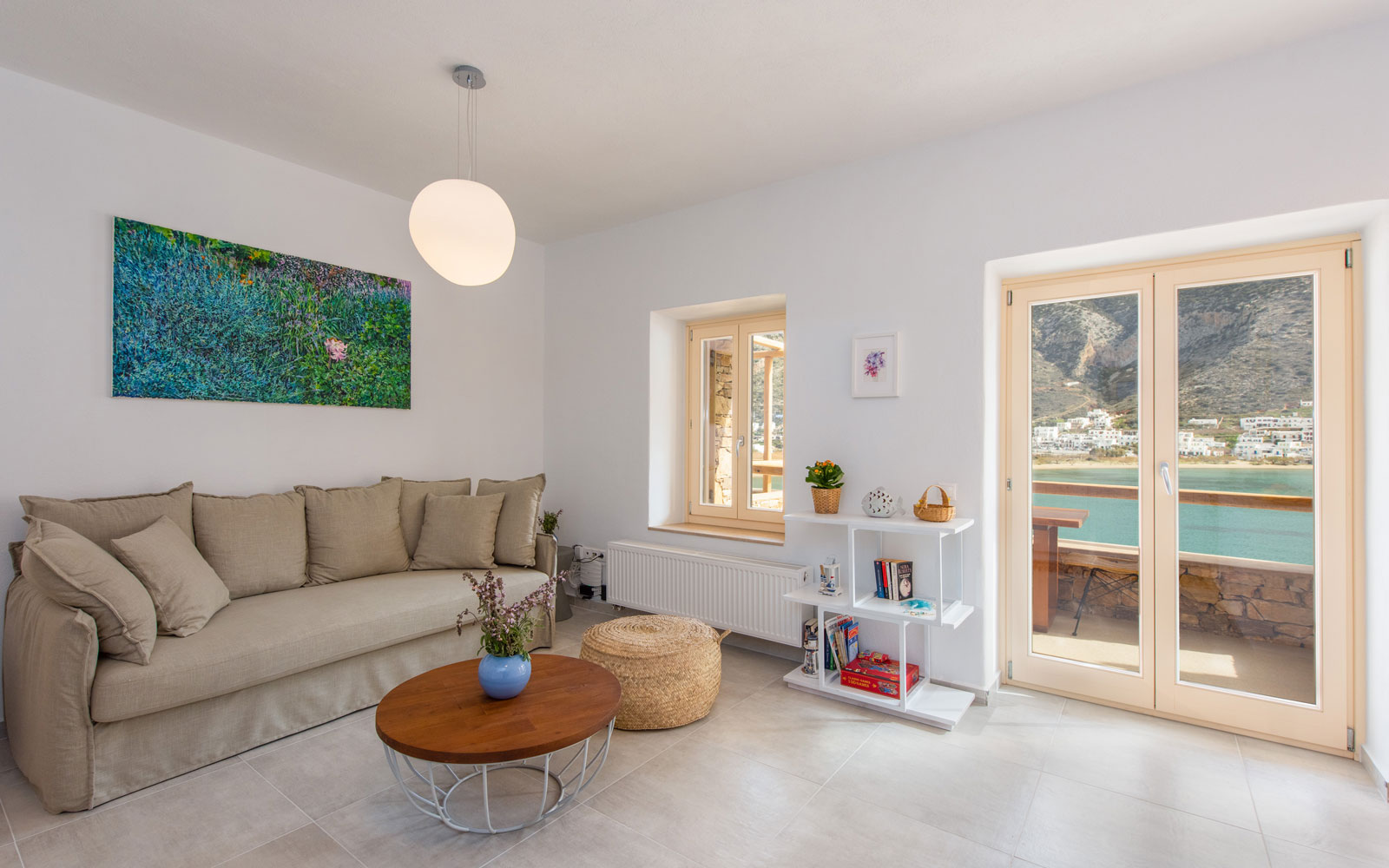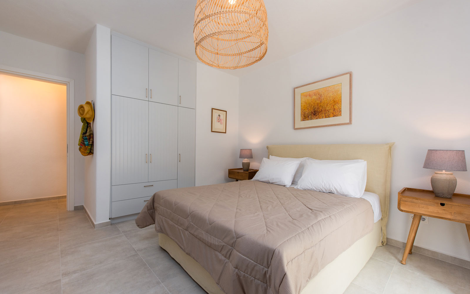 Άνετη και ευχάριστη διαμονή σε ένα ολοκαίνουριο διαμέρισμα χτισμένο από πέτρα σε απόλυτη αρμονία με το περιβάλλον. Μπροστά στο μεγάλο μπαλκόνι απλώνεται ο κόλπος των Καμαρών ενώ τις απογευματινές ώρες το ηλιοβασίλεμα χρωματίζει όλη την περιοχή.